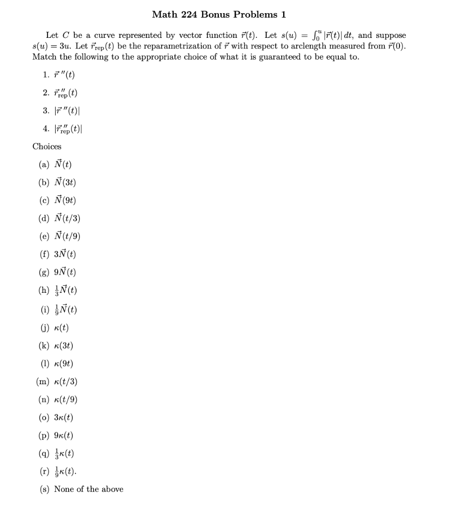 Solved Math 224 Bonus Problems 1 Let C Be A Curve Represe Chegg Com